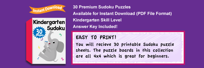 You will receive 30 premium kindergarten sudoku puzzles. The collection can be downloaded instantly immediately after your purchase.